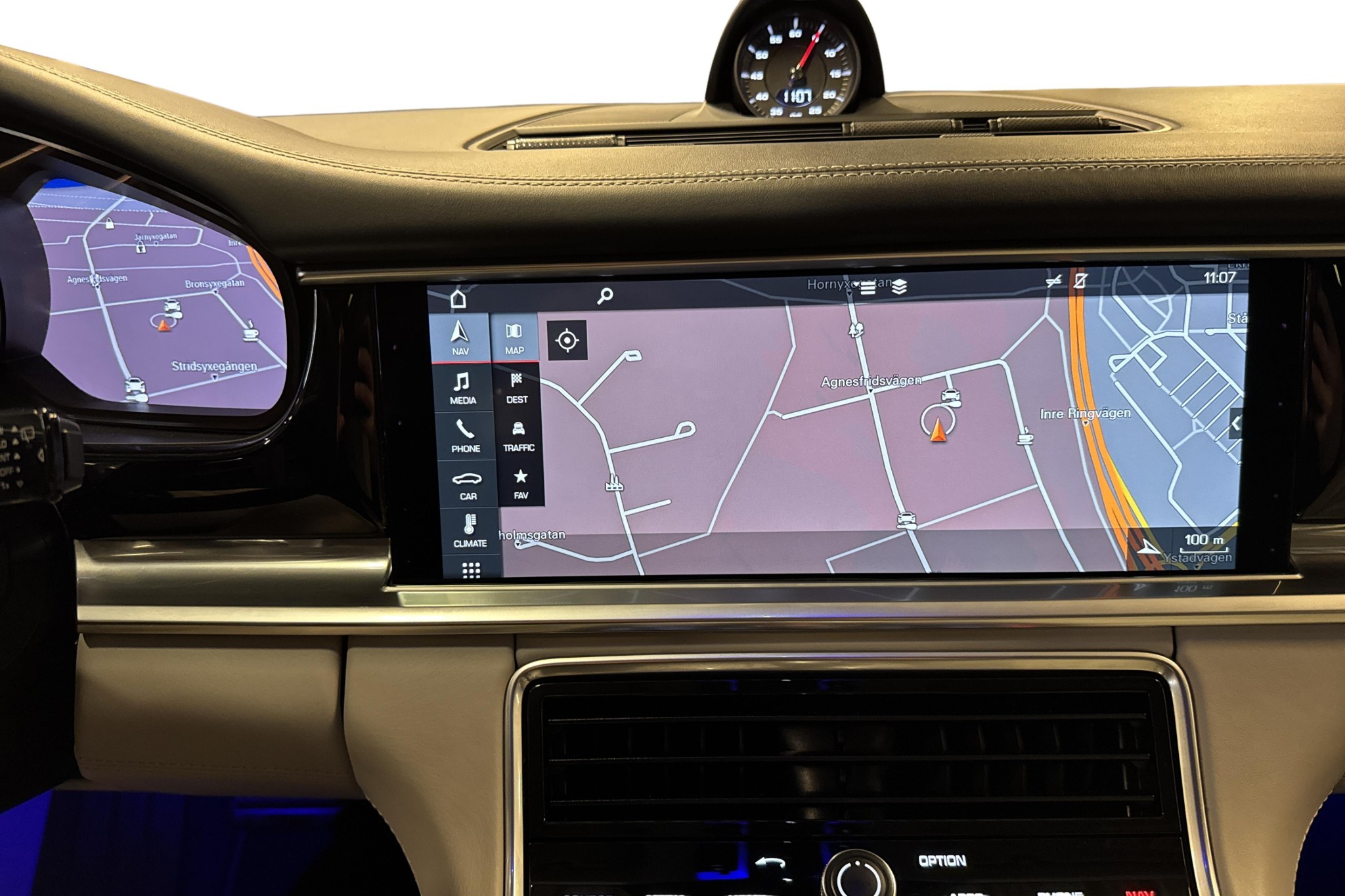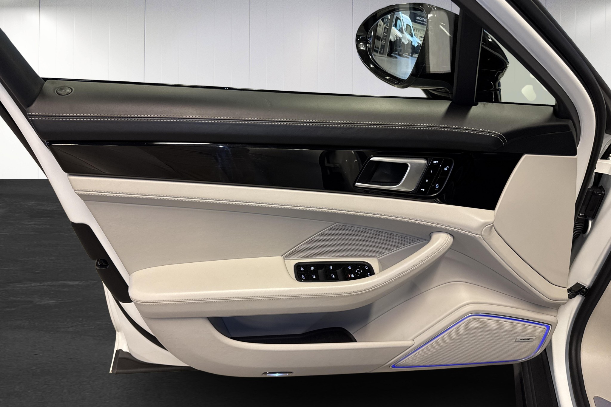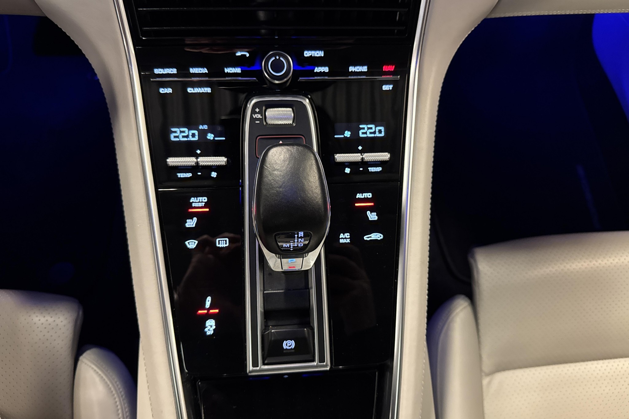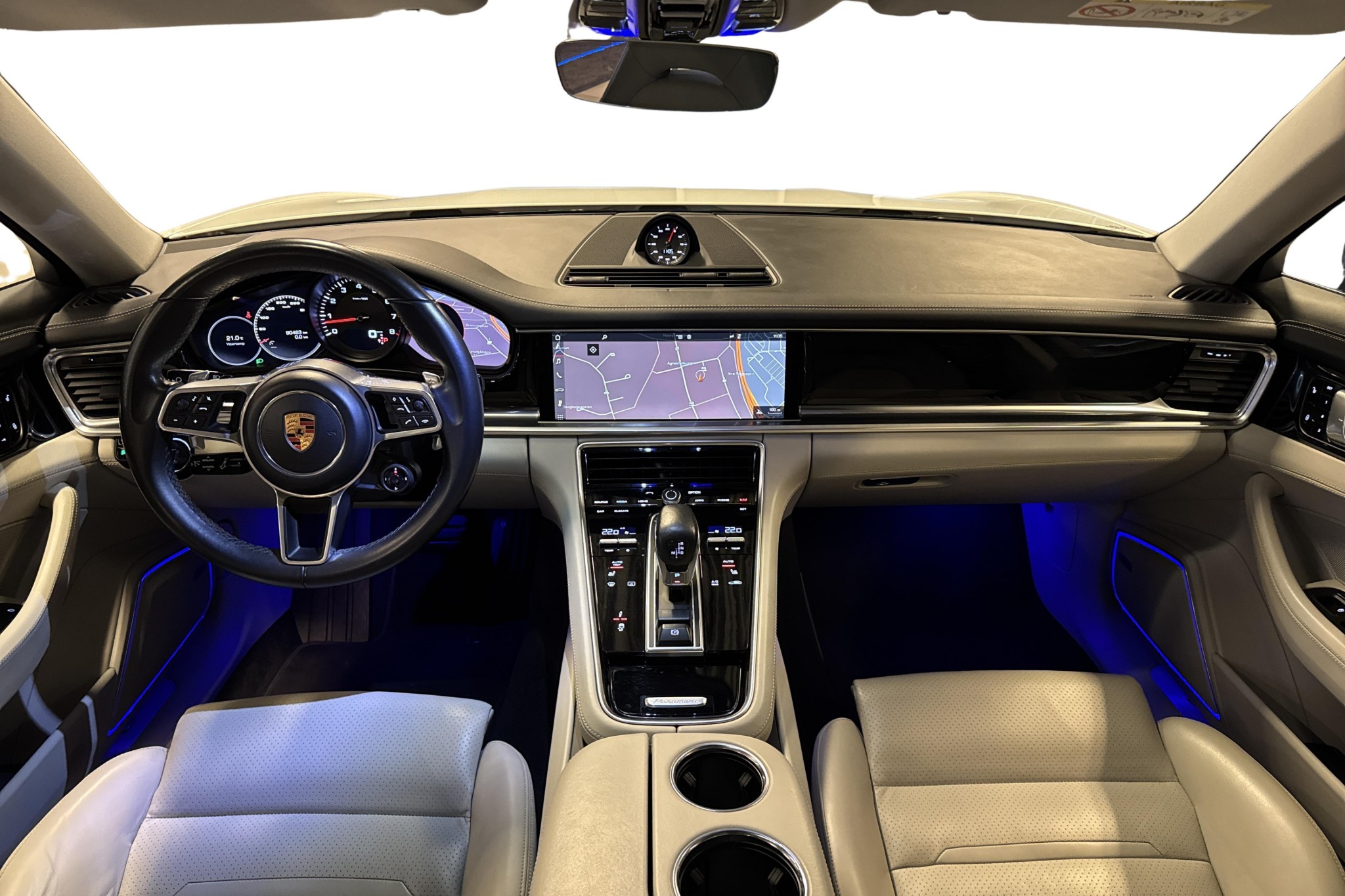 - Tonade rutor, interiört ljuspaket och Porsche-vapen präglade i nackstöd